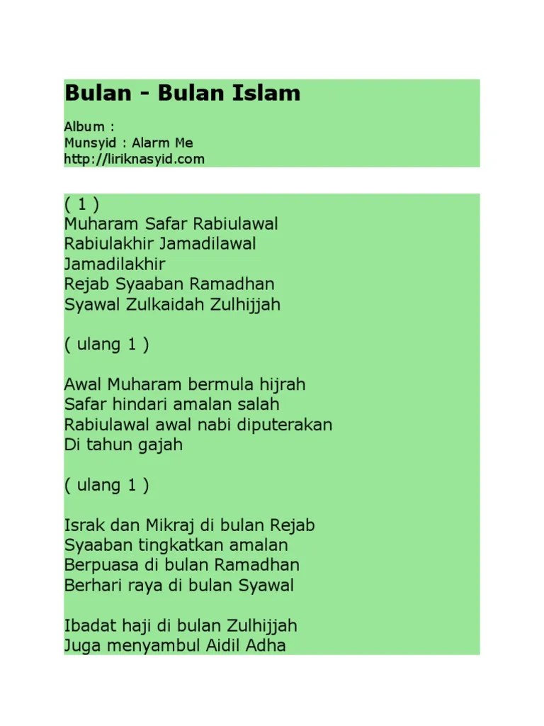 Nama bulan islam dalam kalender hijriyah berdasarkan urutannya, muharram (مُحَرَّم) safar (صَفَر) rabiul awal (رَبِيْعُ الأَوَّل) rabiul akhir (رَبِيع.
